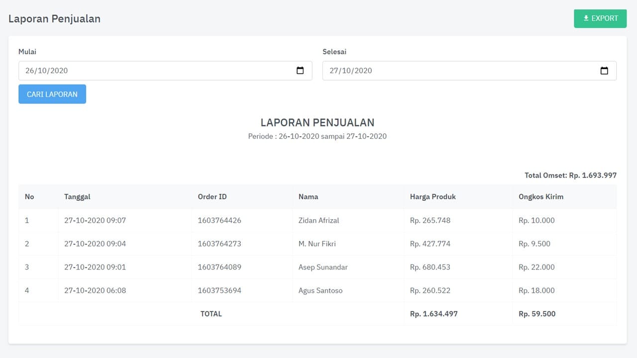 Tidak perlu lagi rekap manual, dengan laporan penjualan kamu bisa cek perkembangan toko online mu