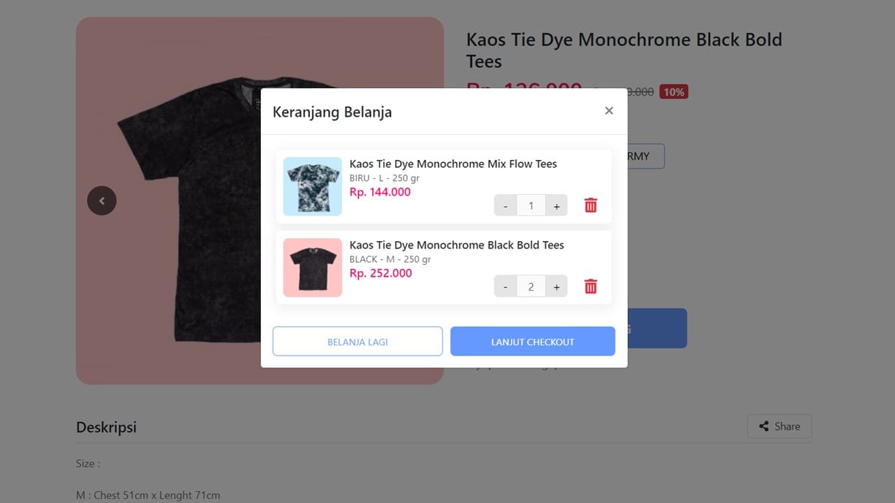 Customer bisa melakukan order lebih dari satu produk dengan beragam varian yang berbeda-beda