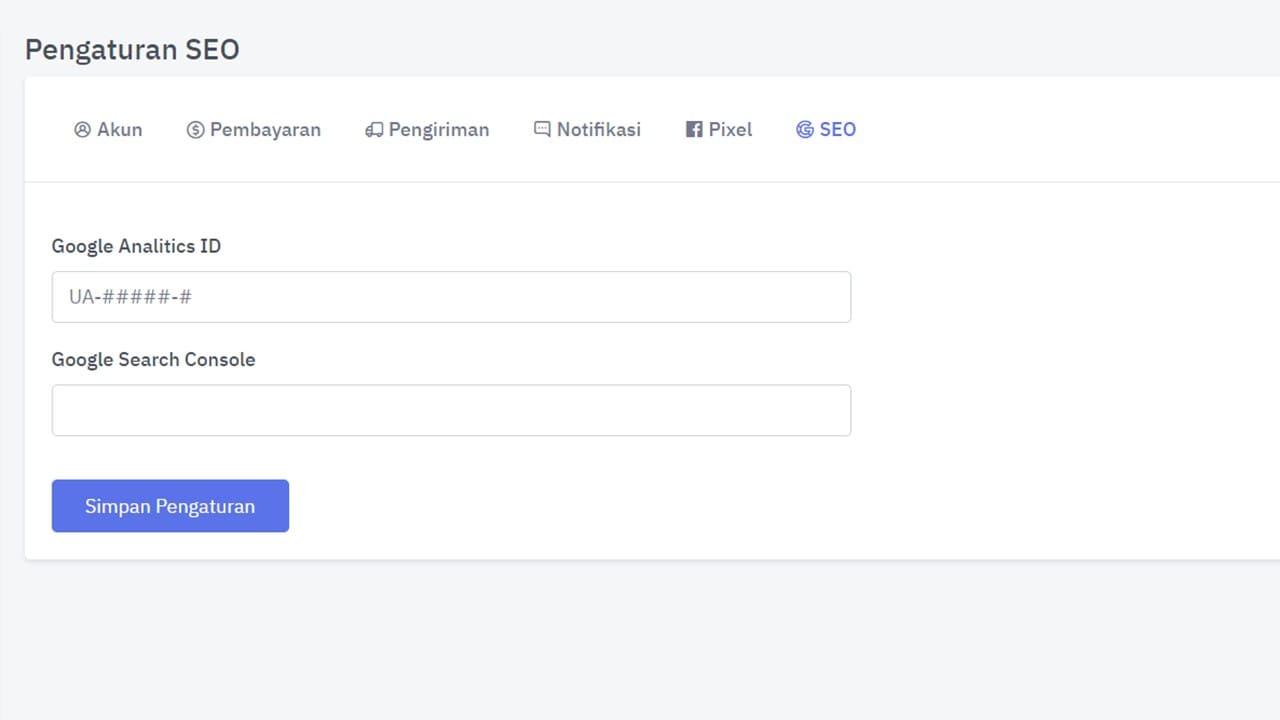 Cukup masukan meta tag verifikasi search console untuk performa SEO toko anda dan id analitic
