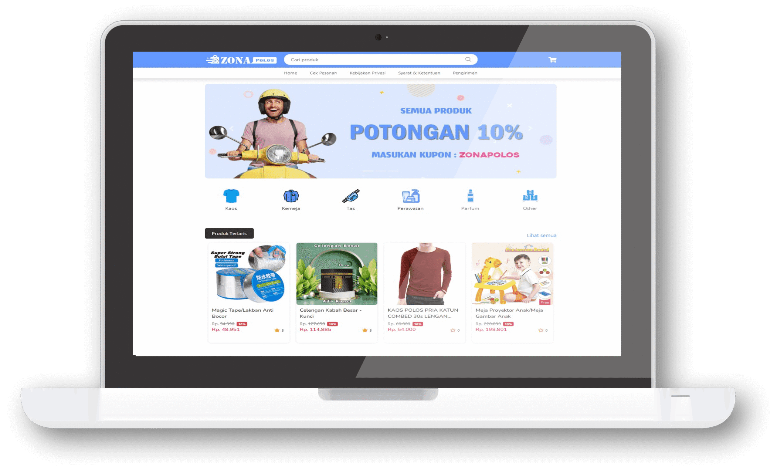 Dengan design yang responsive membuat toko online mu bisa tampil di semua perangkat mobile maupun desktop