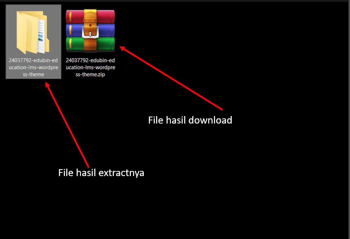 setelah mendownload file themenya, kita bisa langsung extract seperti gambar di atas. setelah di extract cari file theme edubinnya pada folder “theme”. Ukuran file theme 9mb-an. Jika setting default upload website wordpressnya masih 2mb maka kita bisa upload langsung themenya via cpanel : Cara install theme wordpress dari cpanel. setelah install atau upload theme via cpanel langsung balik lagi ke dashboard wp admin lalu ke menu “themes”